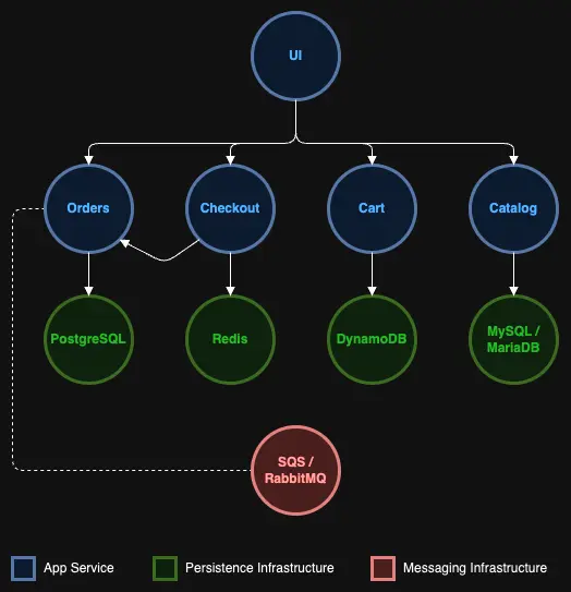Most of the labs in this workshop use a common sample application to provide actual container components that we can work on during the exercises. The sample application models a simple web store application, where customers can browse a catalog, add items to their cart and complete an order through the checkout process.